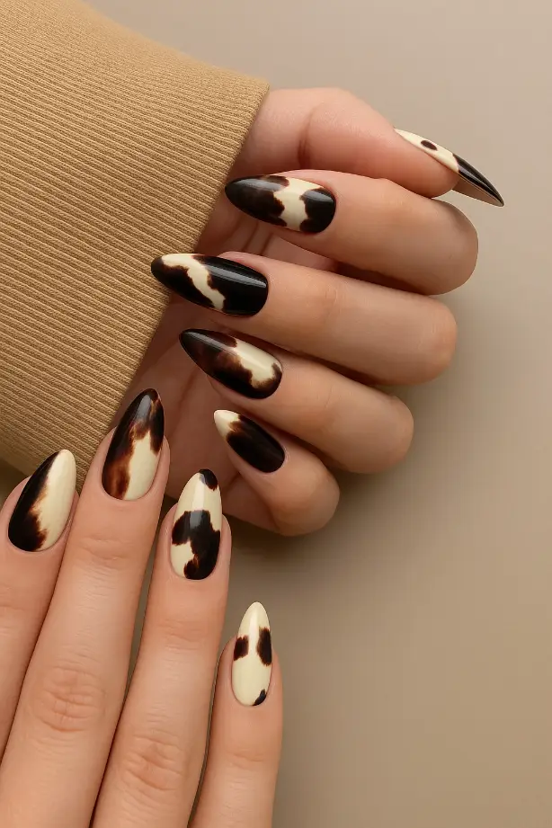 Cow print nails are a fun design for those who like something quirky and youthful.