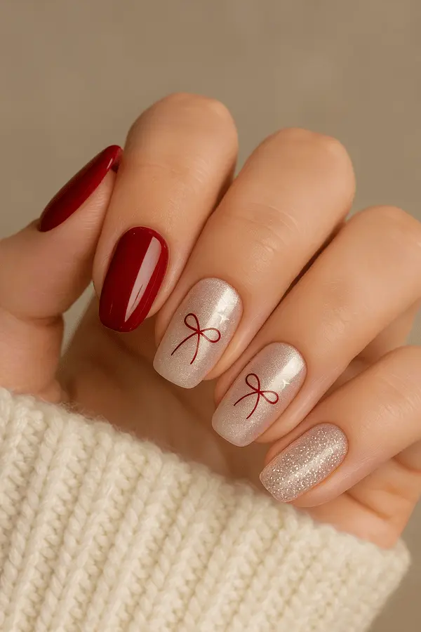 Bows are symbolic of gifting, celebration, and elegance, making them naturally suited for Christmas-themed nail art. The trend has gained popularity because it is simple enough for everyday wear but still festive and unique.
