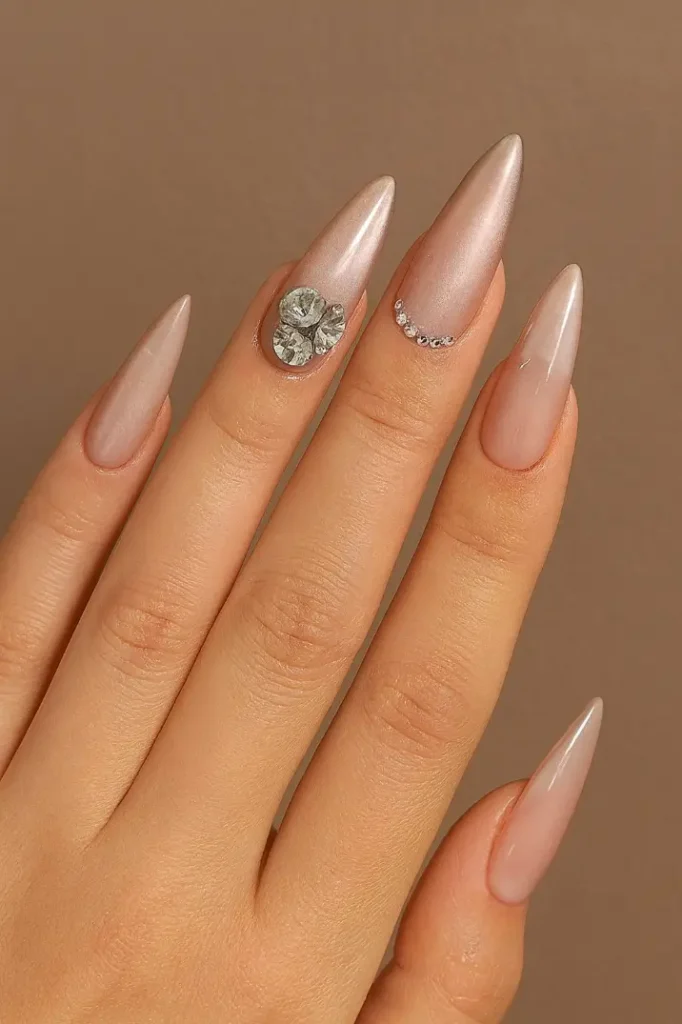 - Nude shimmer nails